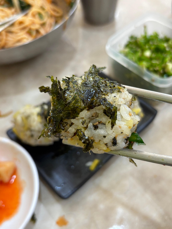 처음먹어보는 멸치주먹밥도 고소하고 국수랑 먹기 좋았슴당 강추!!🍙